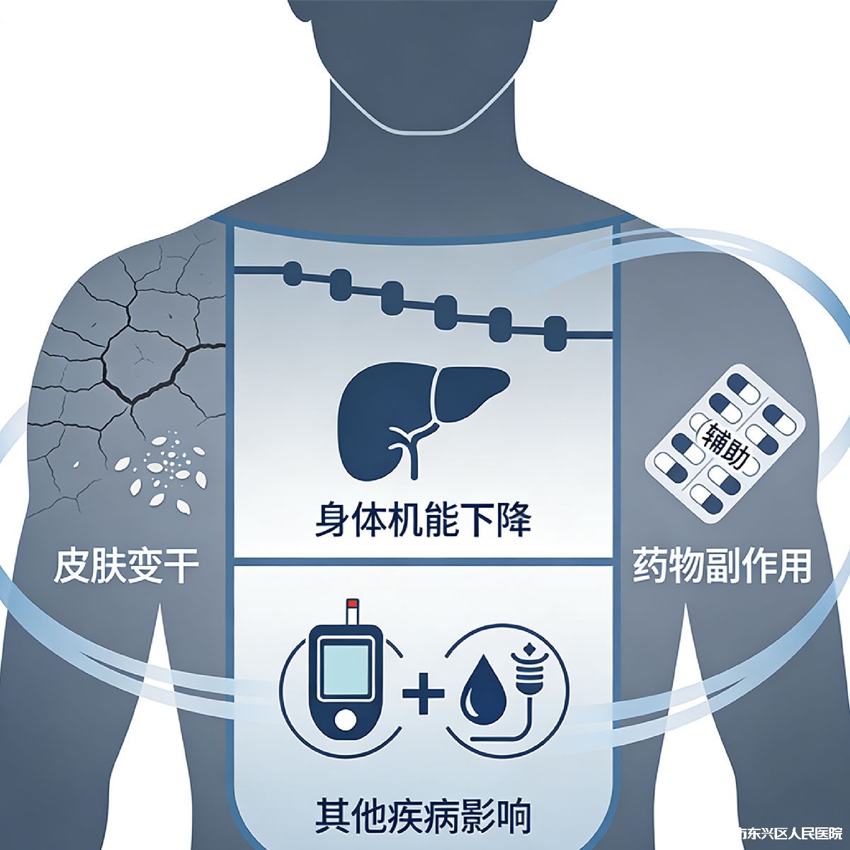皮肤变干:随着年龄增长,皮肤的保湿能力变差,容易干燥脱屑,就像缺水的土地一样,会引发瘙痒。